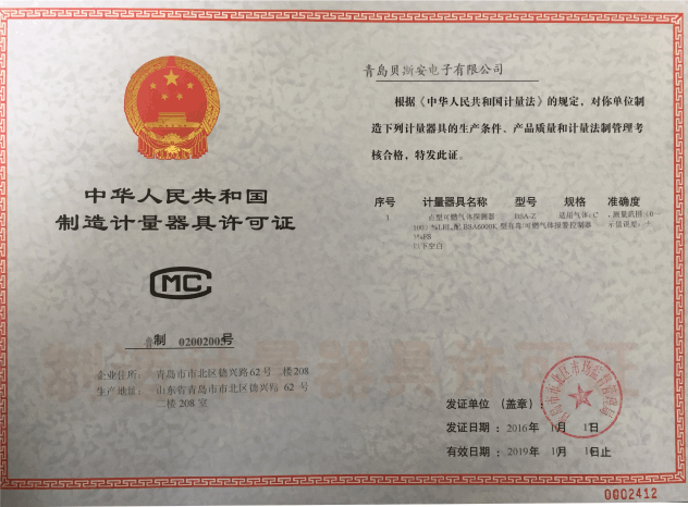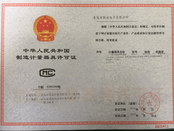 我公司是青島市具有國(guó)家質(zhì)量技術(shù)監(jiān)督部門(mén)頒發(fā)的計(jì)量器具生產(chǎn)許可證的生產(chǎn)企業(yè);獲得國(guó)家防爆電氣產(chǎn)品質(zhì)量監(jiān)督檢驗(yàn)中心頒發(fā)的防爆合格證;獲得國(guó)家公安部消防產(chǎn)品合格評(píng)定中心頒發(fā)的消防產(chǎn)品形式認(rèn)可證書(shū)。